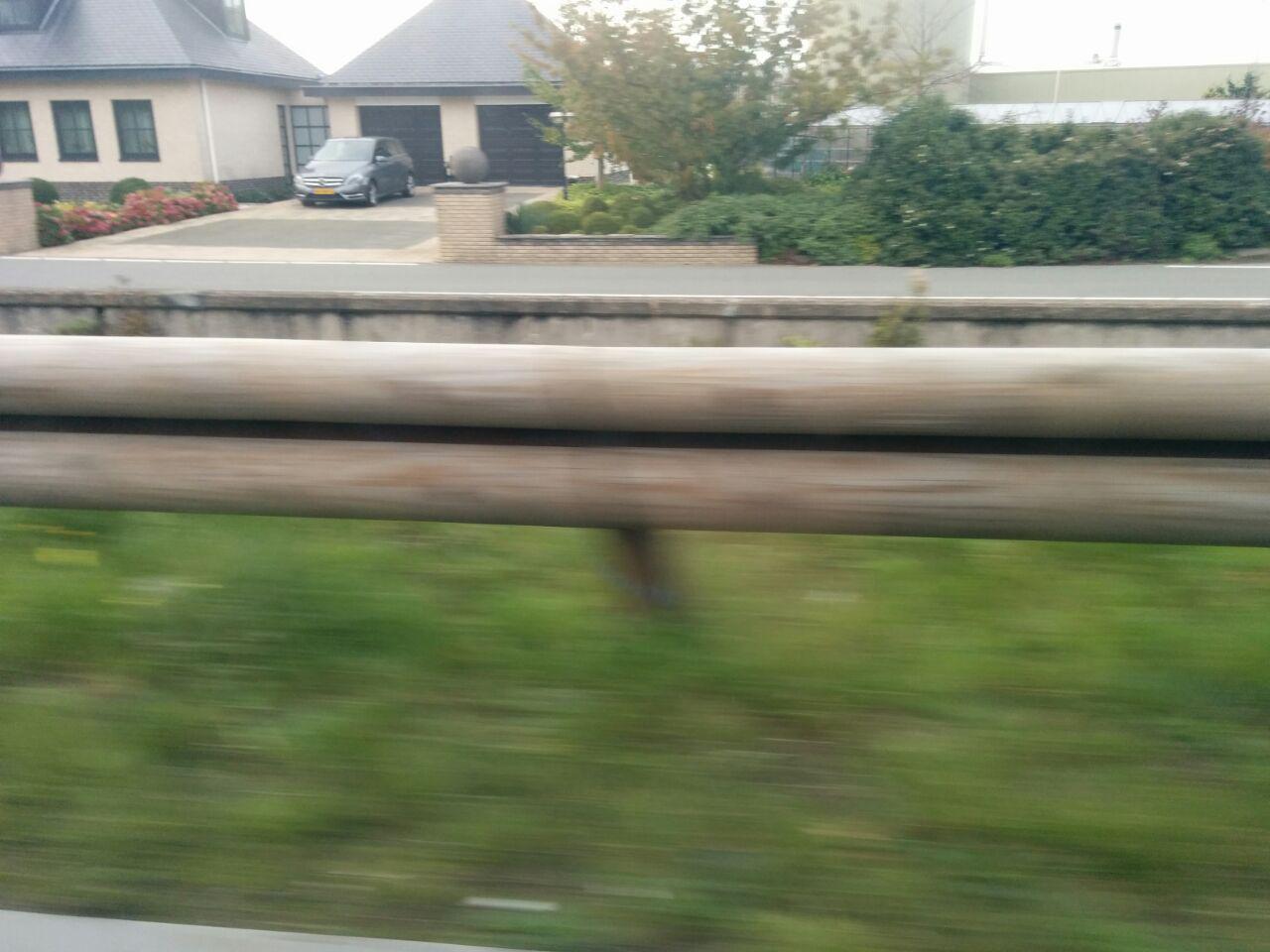 houten vangrail, vanuit auto