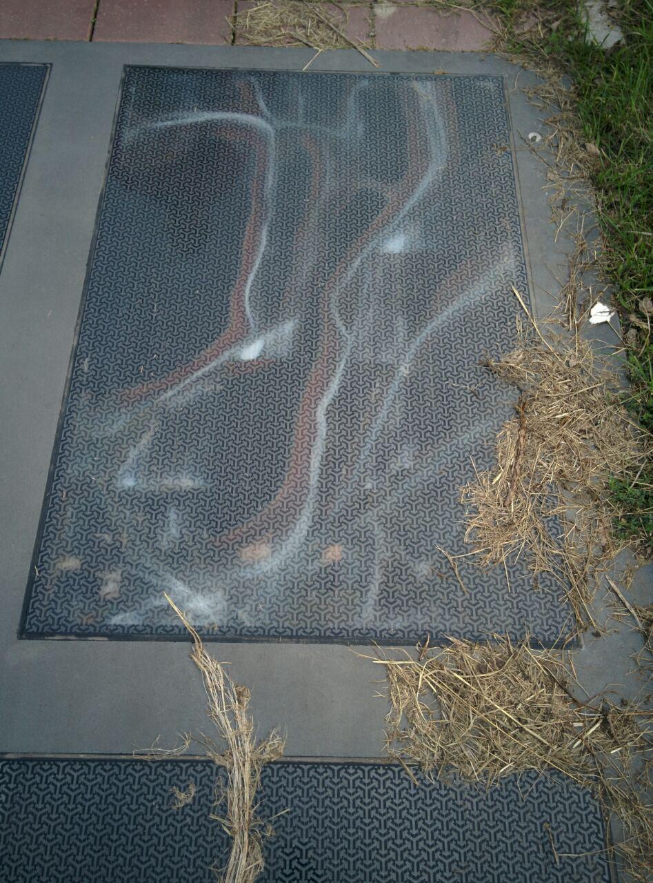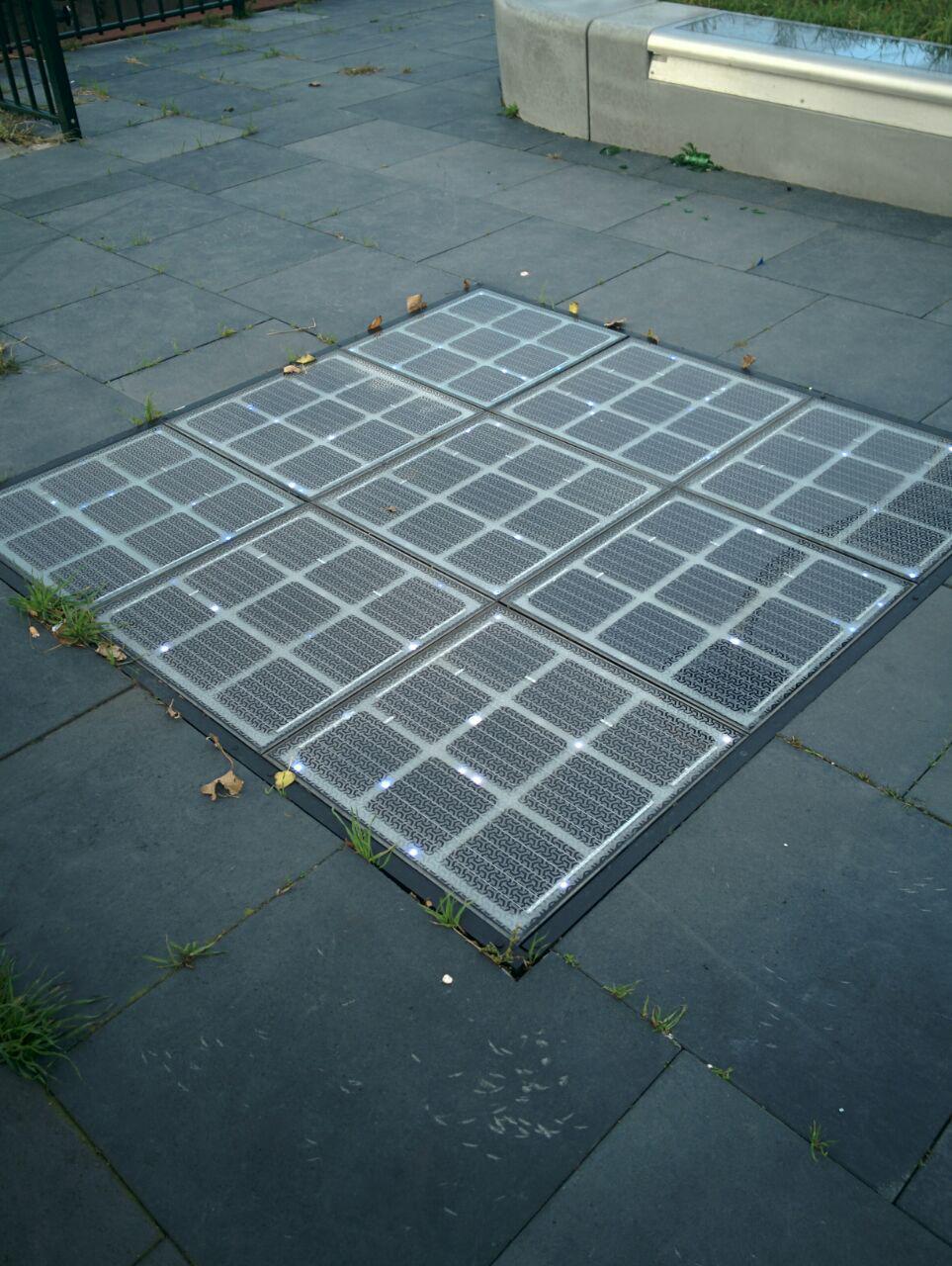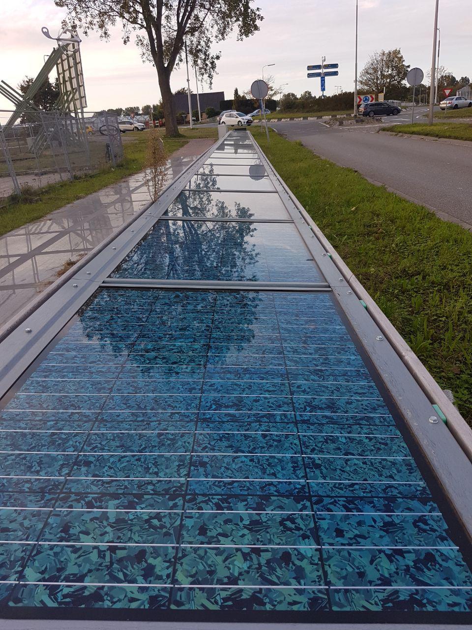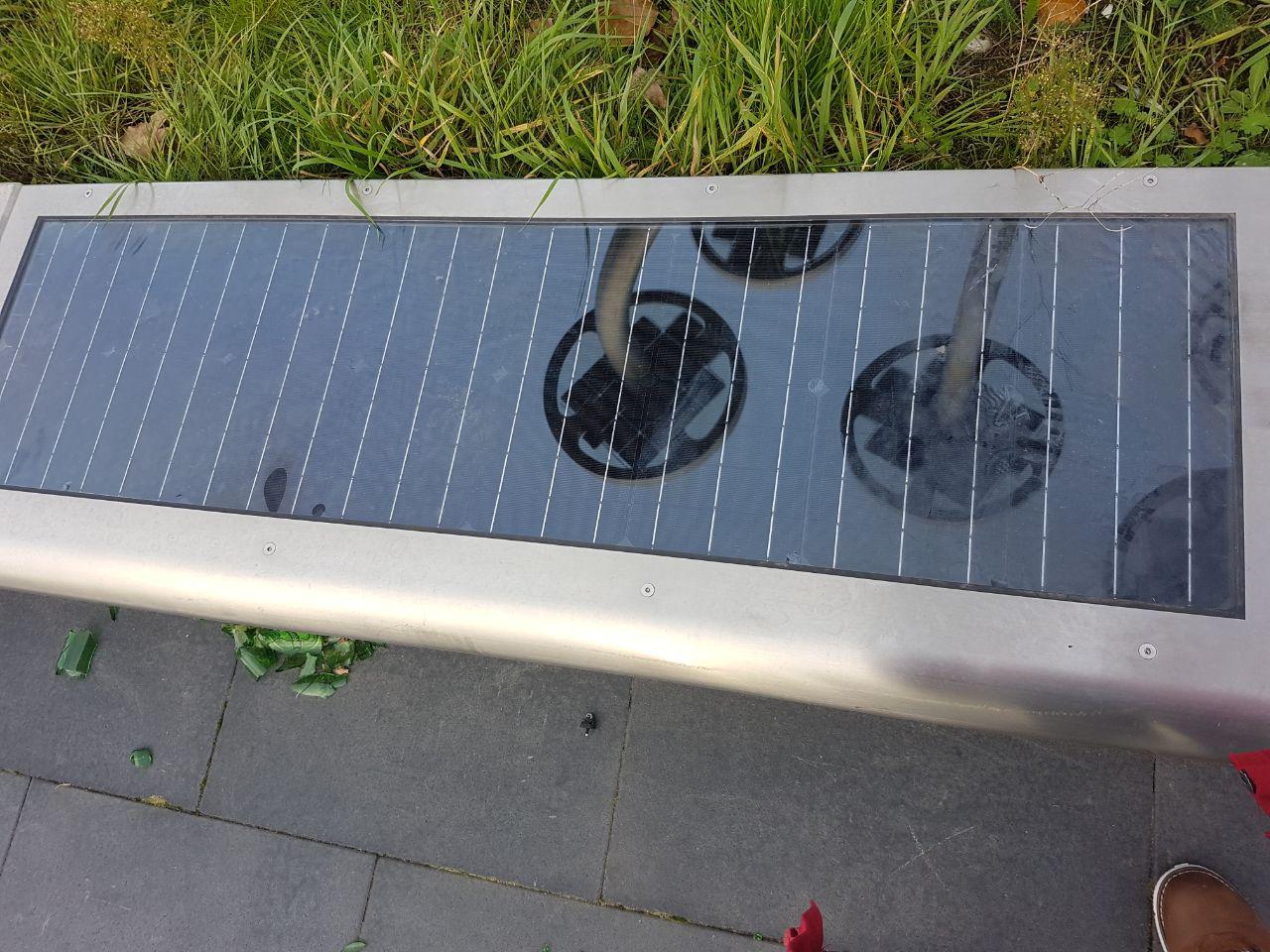 Beschadigd solar panel op fietspad